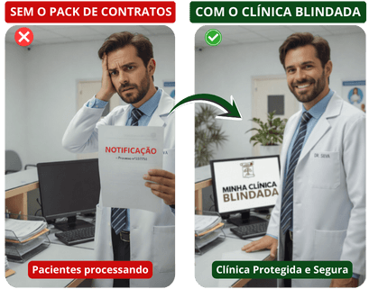E foi sabendo disso que criei o "MINHA CLÍNICA BLINDADA". É fácil e rápido de usar, basta Baixar o Pack de Contratos para blindar sua clínica de processos, má intenções e prejuízos financeiros.